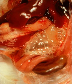 Photo 2. Froth and exudate in the airsac (Chicken)